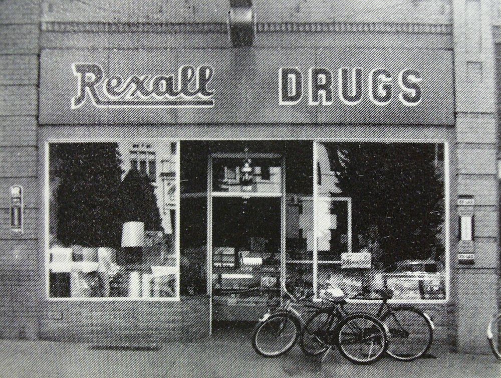 According to Ray Cardwell [Ray Cardwell: Cardwell's, 2010], during the early 1970's, Mona Wolf had "Wolf's Fabrics" in the back of the pharmacy. The pharmacy later merged with Brown's Drug Store and took over both storefronts and still occupies the building. The one-story painted brick building has a cornice decorated with an offset peaked parapet, corbeled dripcourses, raised rusticated pilasters accented with corbels and topped with pyramidal caps, transom window openings covered with wood panels, and a recessed entrance on the west bay. The original entrance on the west bay has been changed to a window. Description and much of the Cultural Data based on One of the earliest photos of Simenstad's Jewelry Several years later, approximately 1912, we can see the main part of the jewelry store Another hand-colored 1912 photograph shows the two men working in the repair center of Simenstad's. November, 1913. Geo Simenstad was both a jeweler and an optician.. November, 1916. Geo. Simenstad was selling "Community Silver". November, 1919. Geo. Simenstad Jeweler. Diamonds are a great investment. From December, 1923, Geo. Simenstad Jeweler was advertising its Christmas suggestions. October, 1935, and Geo. Simenstad Jeweler was selling Bulova American Girl Watches. 10k Gold filled for only $39.75. (According to several web sites I accessed in May, 2023, that $40 in 1935 is now $885.) November, 1936. Geo. Simenstad Jeweler reminding the readers that you needed "The Right Ring. . . for the right girl." The February 25, 1971 East Washingtonian ran this small front page article about Celia Simenstad's upcoming 96th birthday. Geo. Simenstad passed away in September, 1940, and Celia died the day after her 97th birthday in 1972. Both are buried in the Pomeroy city cemetery. Mrs. Celia Simenstad, 570 Columbia, celebrates her 96th birthday Monday, March 1. Mrs. Simenstad, the wife 0f the late George Simenstad, long-time jeweler in Pomeroy, still lives in the home she and her husband had built 54 years ago. She still cares for herself and her home entirely, having no family in this area, and only a few cousins elsewhere. At one time she worked at Cardwell's in the alteration department. Friends and neighbors are urged to remember her Monday with phone calls, cards, gifts. Many people, and several local stores, have been very kind to her in recent years. Samuel Skaggs started a grocery store named Skaggs' Cash Store in American Falls, Idaho, in 1915. He sold it to his son, who with his five brothers: Pepper Oscar Skaggs, Aron Sylvester Skaggs, Loronzo L. Skaggs, Samuel Olnie Skaggs, Levi Justin Skaggs, Marion Skaggs grew the chain, operated as two separate businesses, Skaggs Cash Stores (Pepper Oscar Skaggs) and Skaggs United Stores (M. B. Skaggs), to 191 stores by 1920. Skaggs United expanded into the Palouse in the early 20's, opening their store in Pomeroy in February, 1925. By 1926 it had grown to 673 stores, when it merged with Sam Seelig Company to form Safeway. Skaggs Branch for Pomeroy; Announced as store No. 251, a Pomeroy branch of the Skaggs grocery chain will be formally opened Saturday [February 21], in the Kuykendall block on Main street between Second and Third. Extensive alterations including a changed entrance and interior improvements have been made to the property, which is under lease to the grocery chain for a term of five years. C. L. Black, formerly with the Walla Walla branch, is manager of the Pomeroy store, and with Mrs. Black will occupy the Clary residence on Pataha street. The local store is a part of the Lewiston district, which comprises branches in Colfax, Moscow, Clarkston, Lewiston and Pomeroy. The Colfax and Moscow stores were recently opened. The district is under the supervision of B. P. Kramlich, of Lewiston, who also is manager of the branch in that city. The local store, according to announcement, will carry a complete line of staples and fancy groceries, green goods, bread, and cured meats. Additional employes will be recruited from local material as the business expands, according to Mr. Black. "While the number of the Pomeroy branch is 251, there are in reality 260 stores and 40 markets," said Mr. Kramlich, who has been in Pomeroy from the Lewiston district headquarters to assist in the opening. "The Pomeroy number was assigned before several other stores, later given numbers, were opened. The corporation operates in eight western states. "The Skaggs stores, while a part of a chain and enjoying the advantages of chain buying, are nevertheless local institutions., The local managers are stockholders in the corporation, and the community in which a branch is located receives the support and cooperation of the mnanager just as it does from every other business establishmenbt." The first advertisement, from February, 1925, for the new Skaggs United Store in Pomeroy. The Kuykendall Block and Mulkey Block as they appear in 2021 as Pomeroy Pharmacy. In this undated (but post-1963) photo of the Pomeroy Rexall Drugs, you can see that bike parking hasn't changed Wandering Pomeroy's Main Street Area Traffic Cameras This Web site has been financed by Castlemoyle Books and Gifts for the Pomeroy Historic Preservation Committee.