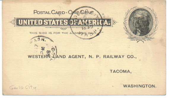 Gould City, Garfield County, Washington Post Office in existence: July 17, 1891 through July 15, 1913