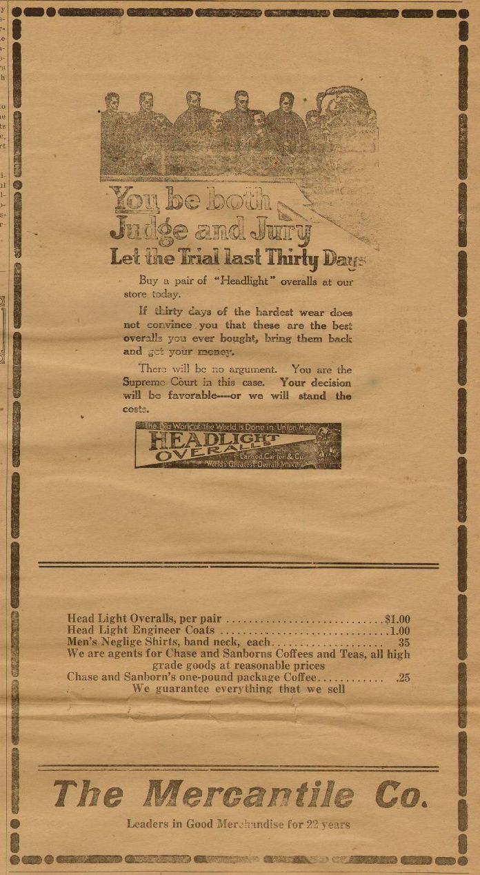 From a July, 1914, issue of the East Washingtonian my currently oldest advertisement for The Mercantile Company