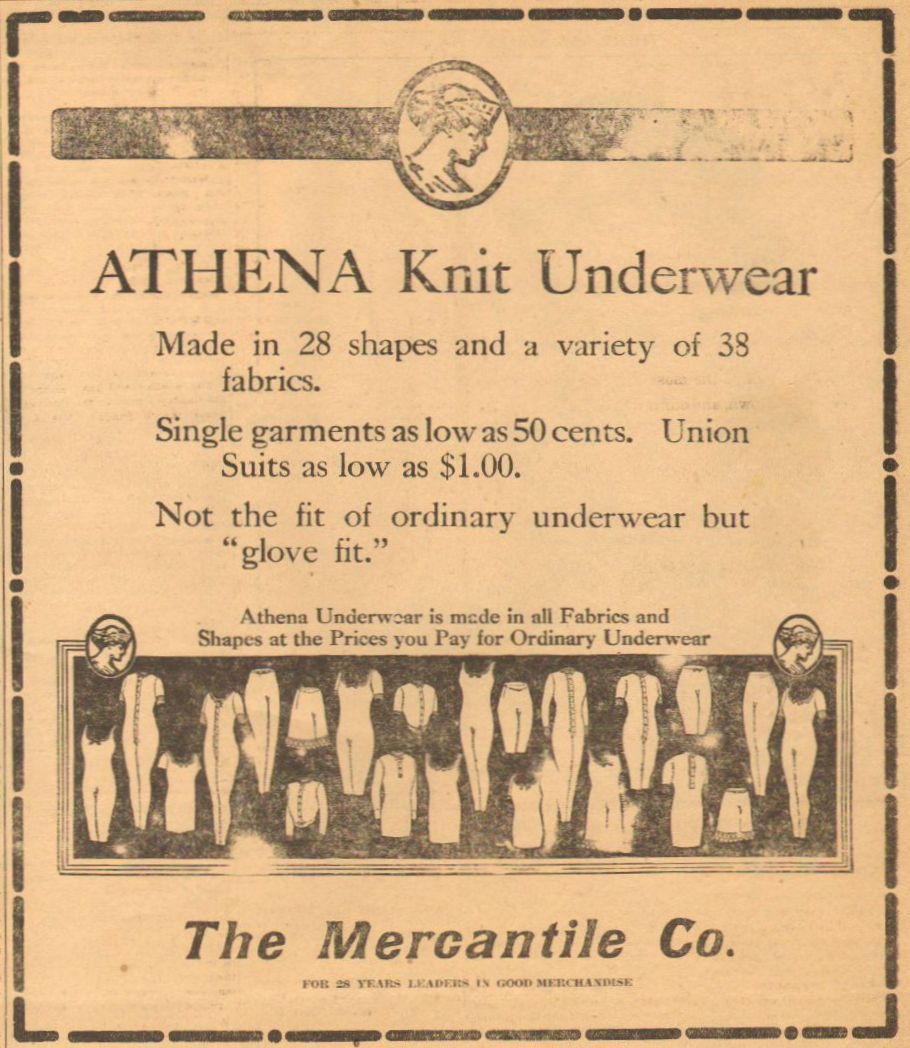 As I'm working on this page in the hot summer of 2021, knit underwear is the last thing I'd be interested in. But it was porobably a great seller in March, 1919. Just look at how much of your body was covered with this underwear.