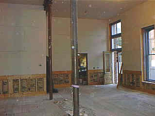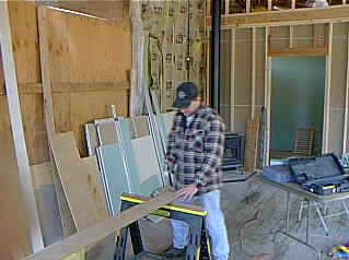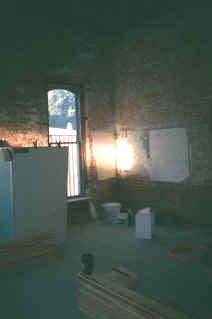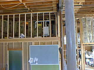 Fall and Winter of 2000 -- Framing in the office area. The door to the rest room is covered with vintage black plastic. | |