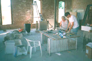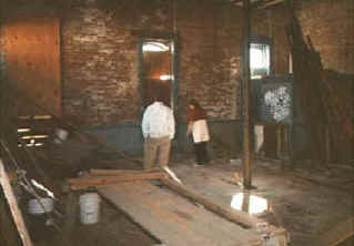 This is it. November, 1998. Beverly saw the dream. Ken Graham (in white coat) the real estate agent who worked with us to procure this building, was a bit skeptical. | |