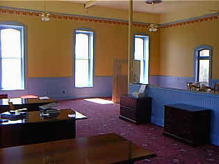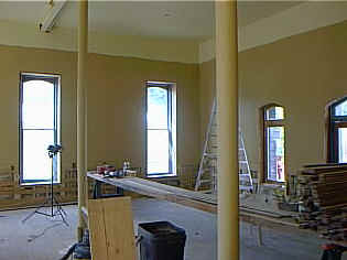 The (somewhat) crowning moment! Part of the furniture is in. John's and Beverly's desks are, we are promised by Bob at Black and Vails in Lewiston, Idaho, on their way. |